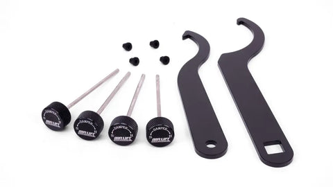 Kit Includes: Complete Coilover kit with set of (4) front and rear dampers, (2) spanner wrenches, (4) damping adjustment knobs and (4) damping knob grommets.