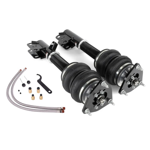 Kit Includes: Complete front Air Suspension kit with set of (2) front dampers with (2) air springs, (1) spanner wrench, (2) damping adjustment knobs, (2) damping knob grommets, (2) stainless leader lines, (2) 1/4" FNPT x 1/4" PTC fittings and (2) 1/4" FNPT x 3/8" PTC fittings.